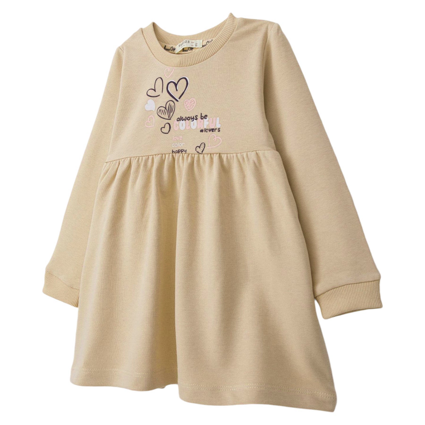 Girls' cotton dress with hearts Breeze 20837-30924 from the fall-winter season, beige color