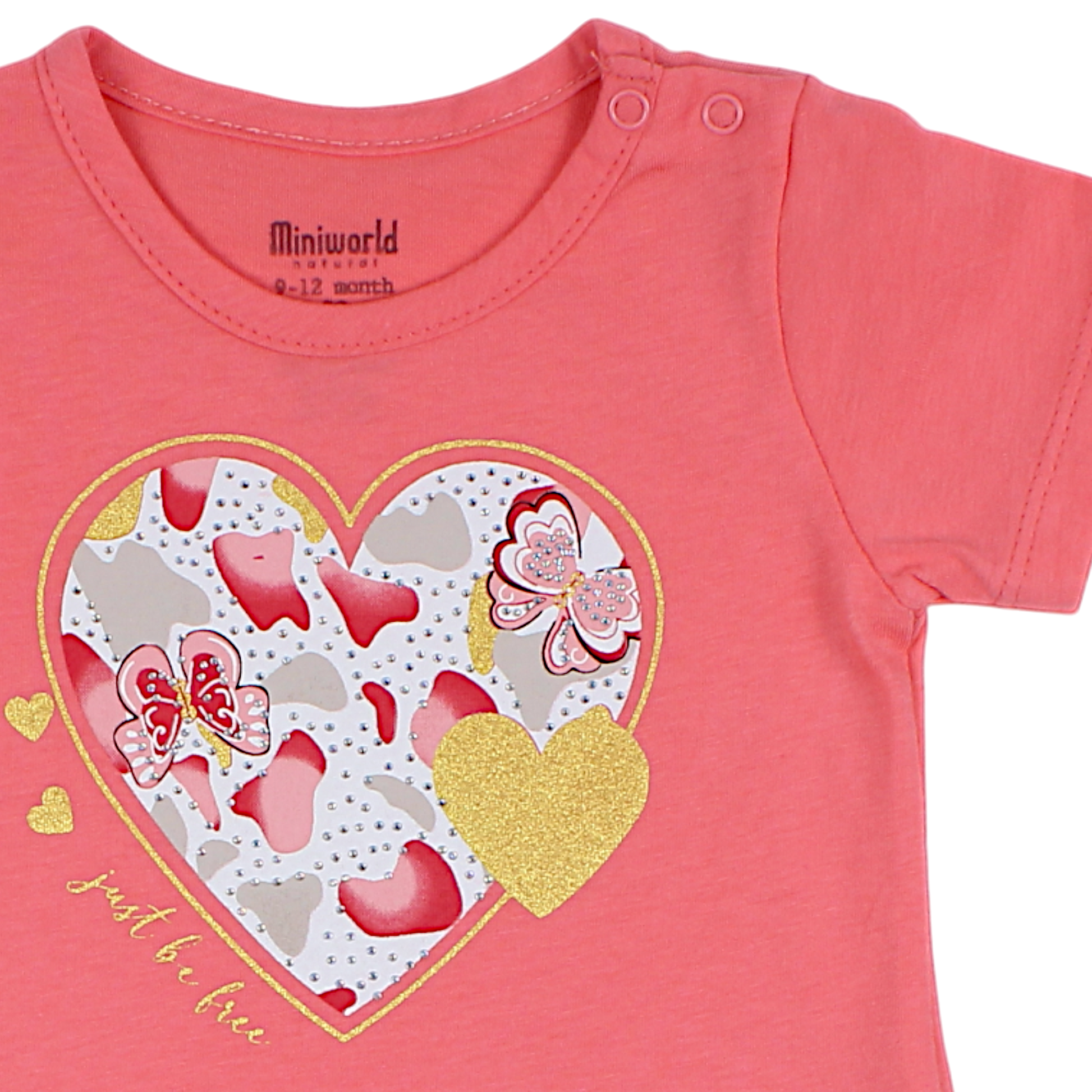 Girls' cotton heart dress coral Mini Word 18178-13525-27