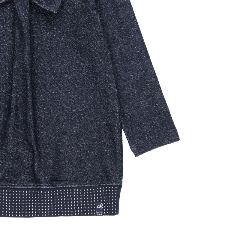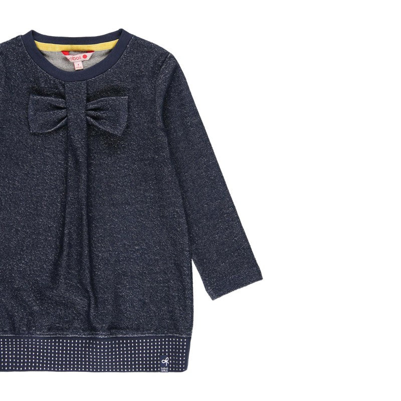 Cotton dress for girls for children with long sleeves and a decorative bow girl Boboli from the autumn winter collection product code 401072 navy blue color. Children's clothing.