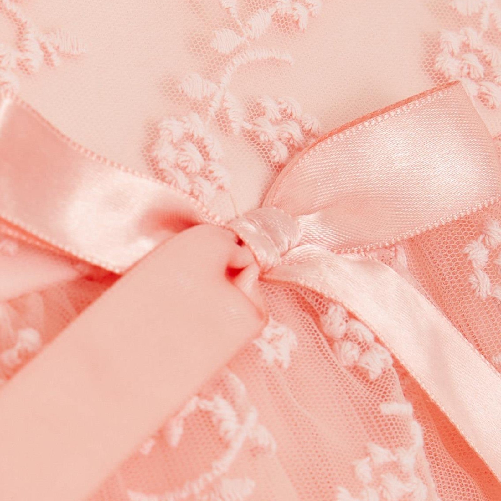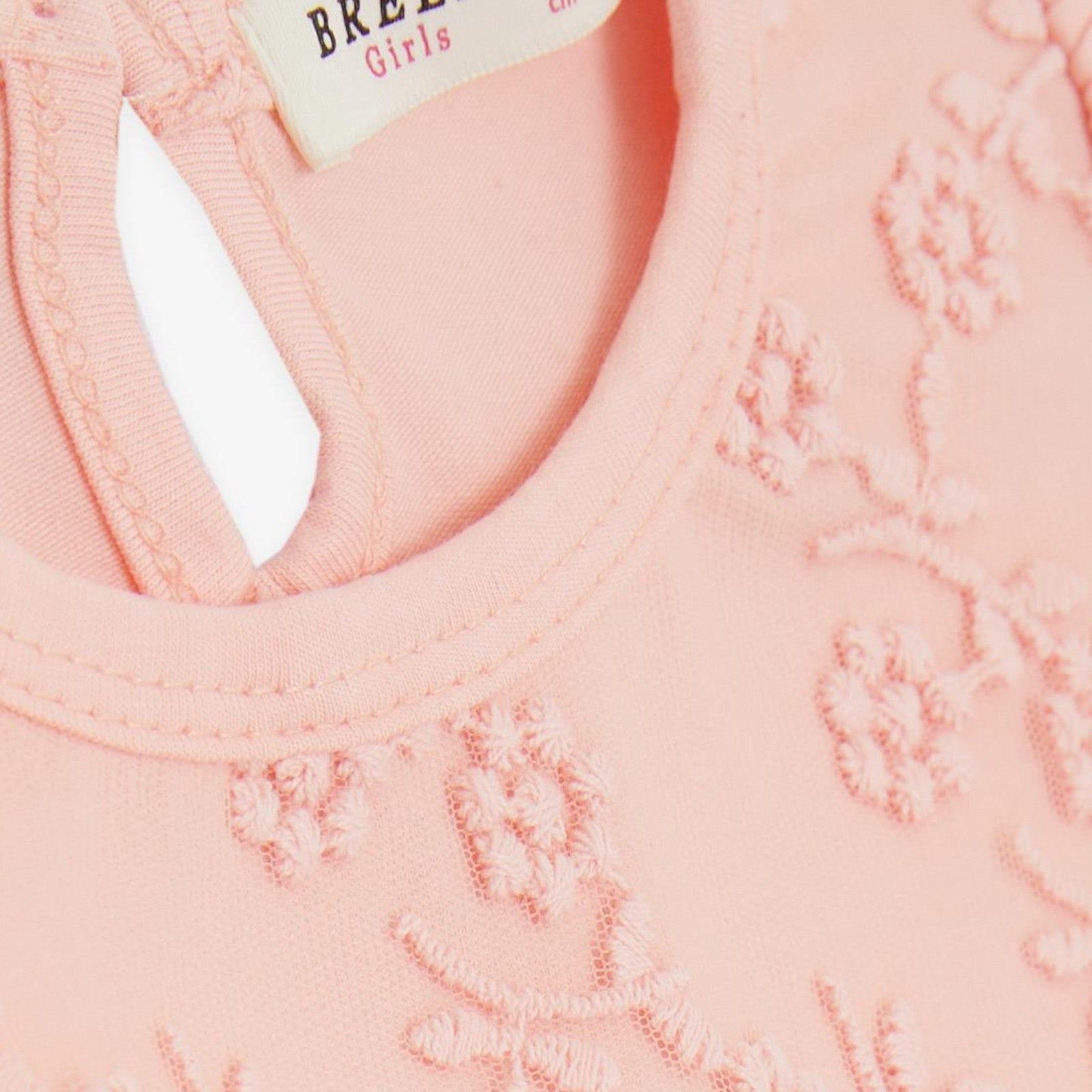An ethereal dress for girls in apricot color, made of delicate lace. The short sleeve adds charm, and the elegant lace gives it a sophisticated style. The dress has a practical button closure at the back, which makes it easy to put on. The lack of pockets emphasizes its subtle and light character. Perfect for various occasions, a spring-summer proposition from the Breeze brand.