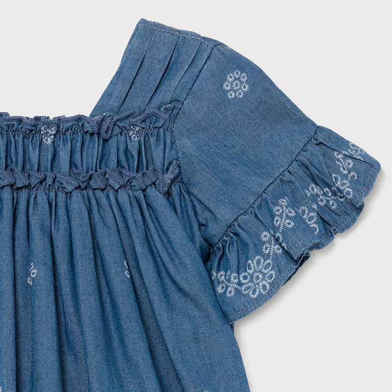 Children's denim dress with short sleeves and embroidery girl Mayoral from the baby girl collection from the spring-summer season product code 1981 color 5 Blue. Children's clothing.