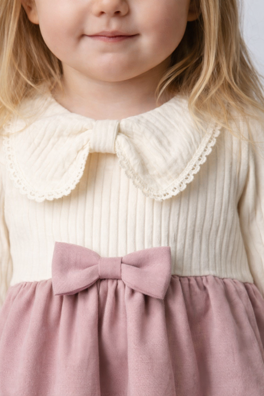 Sukienka kokardka dziewczęca beż Bebedexs 1760-31126-1