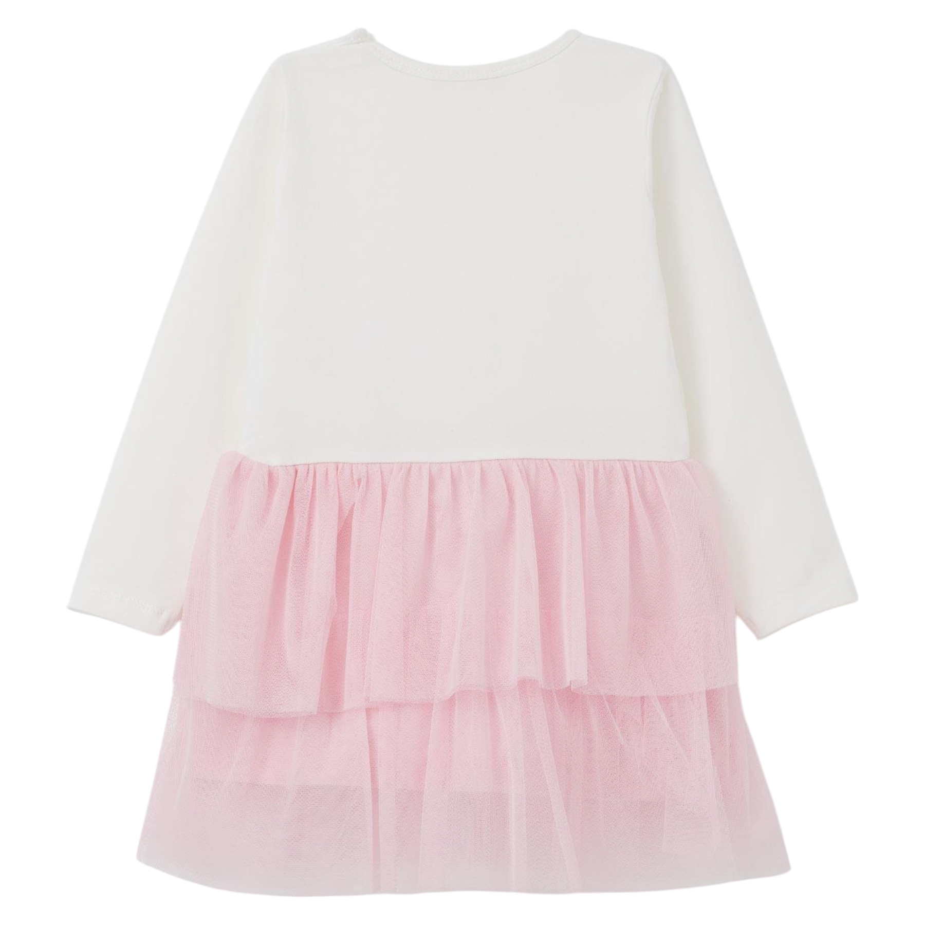 This delicate dress will be a great choice for both holidays and going out. You can match it with elegant ballet flats or ankle boots in pastel colors. On colder days, it goes great with warm tights and a classic coat in a light shade. Its versatility will be appreciated by parents who are looking for something both beautiful and practical for their little ones.