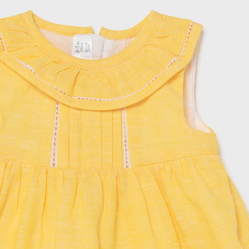 Children's linen dress with panties girl Mayoral from the newborn girl collection from the spring-summer season product code 1834 color 39 Yellow. Clothing for newborns.