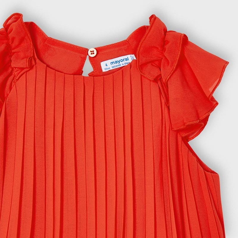 Pleated dress for children elegant with ruffles on the sleeves for girls Mayoral from the Mini girl collection from the spring-summer season product code 3911 color 69 Red. Children's clothing.