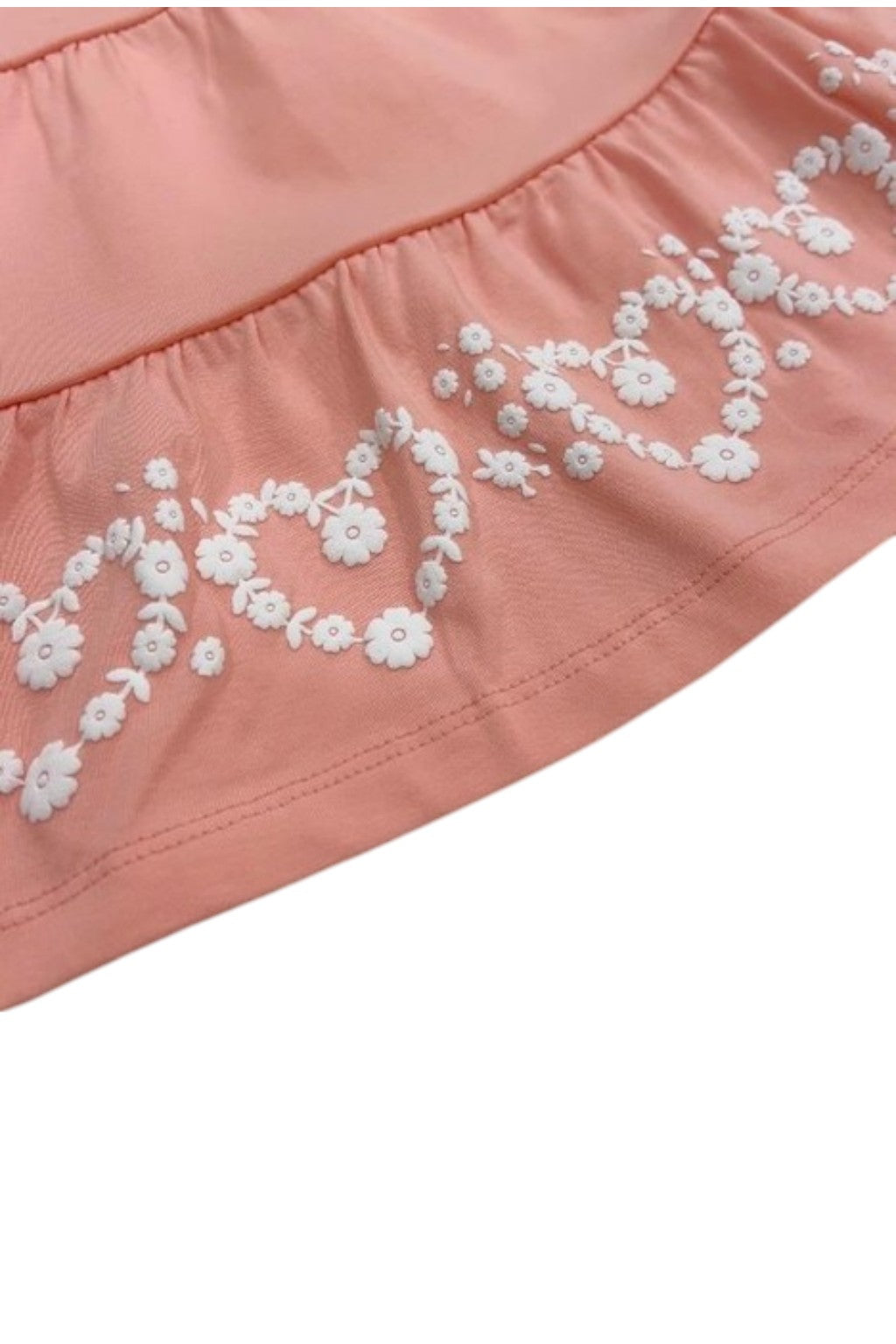 This charming, girly dress in a fango color, adorned with delicate heart motifs , is perfect for spring and summer days. It's a comfortable wardrobe staple for any young lady. Made of soft cotton with a touch of elastane, it ensures comfort and freedom of movement. The dress has short sleeves and a round neckline, making it perfect for any occasion. It has no fastening, making it easy for a child to put on. Perfect for any occasion , from everyday strolls to special occasions.