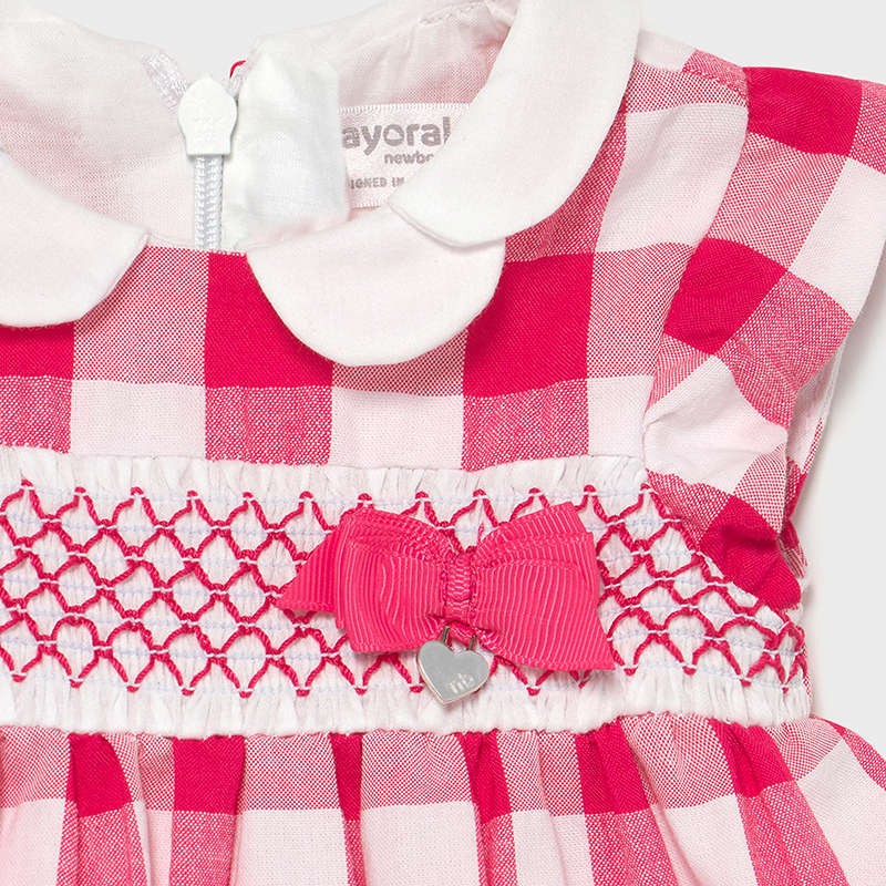 Checkered dress for children with panties girl Mayoral from the newborn girl collection from the spring-summer season product code 1833 color 60 Fragola. Clothing for newborns.