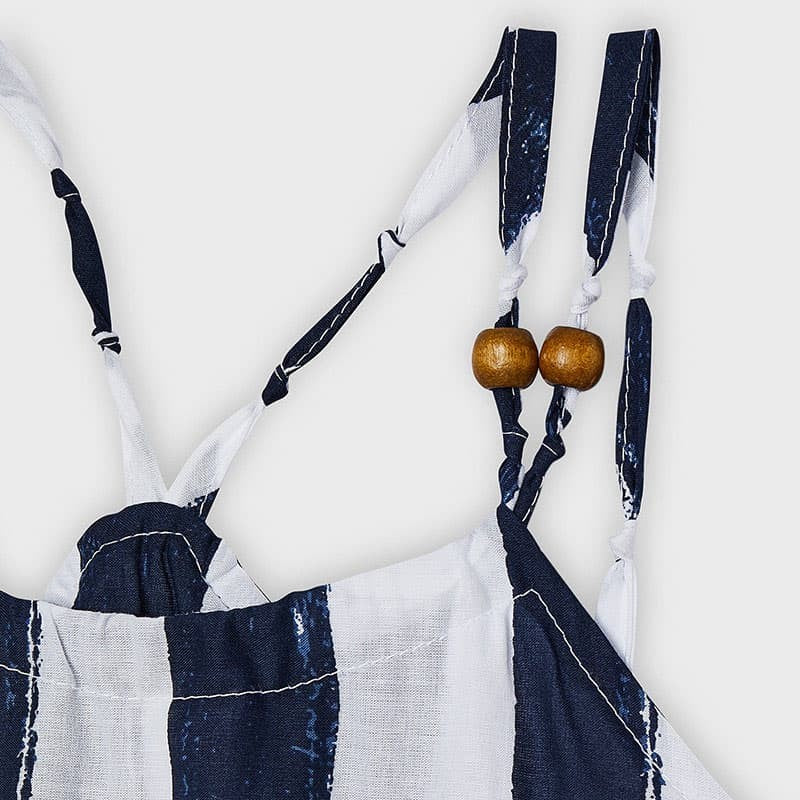 Children's striped dress with ruffles for girls Mayoral from the junior girl collection from the spring-summer season, product code 6947, color 43 Navy. Youth children's clothing.