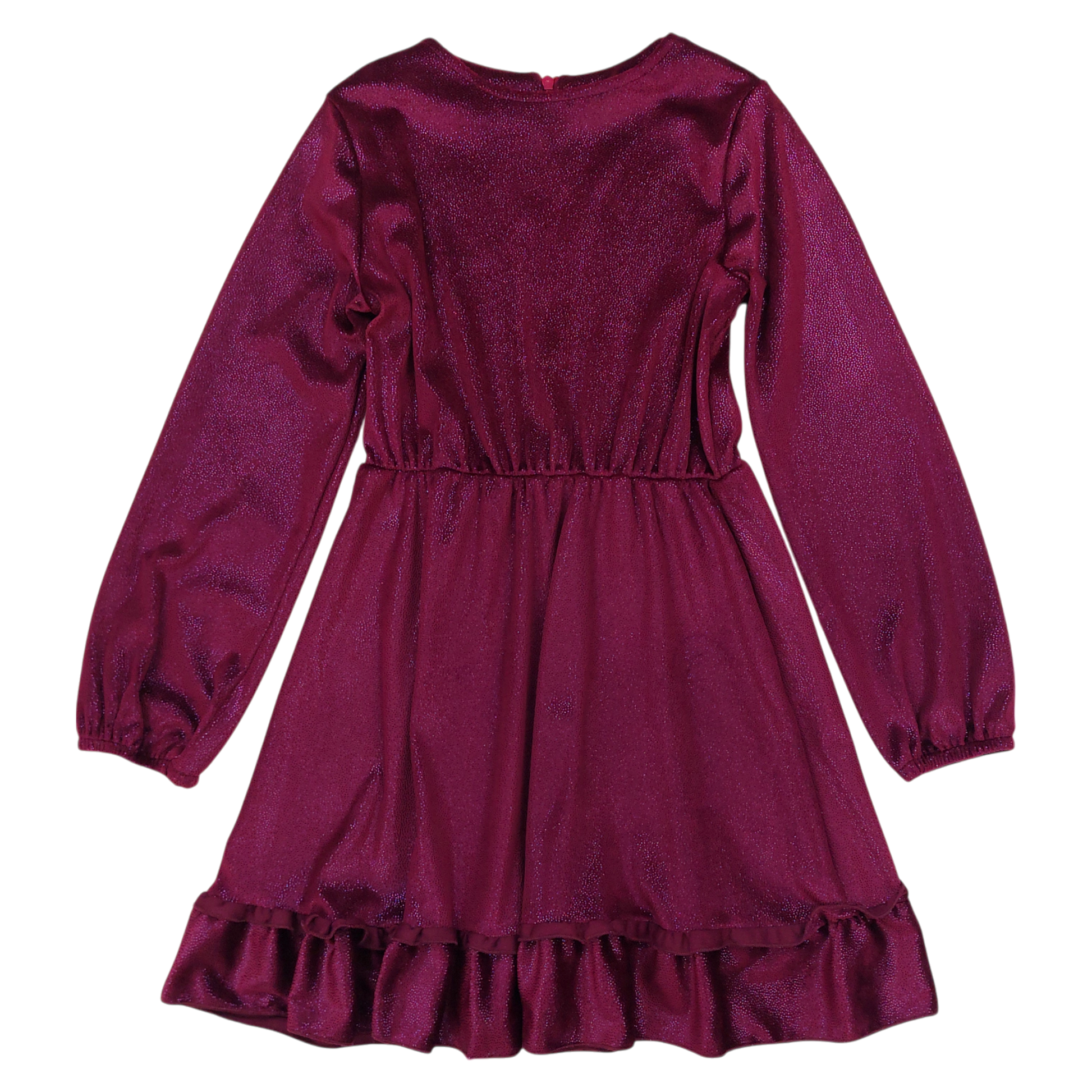 The burgundy Katerina formal dress is a unique choice for a girl for special occasions. Made of shiny material , it attracts attention and adds elegance. It has long sleeves finished with a delicate cuff and a frill at the bottom, which emphasizes the girlish character. The waist is emphasized with an elastic band, and the hidden zipper at the back makes it easy to put on the dress. The model is distinguished by a round neckline and a simple but effective cut. It is an ideal dress for holidays, birthdays or other celebrations.