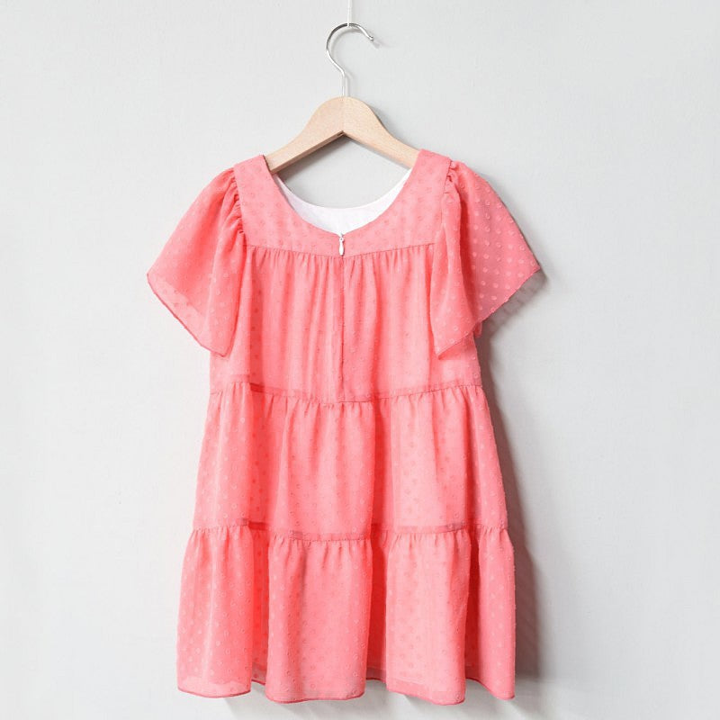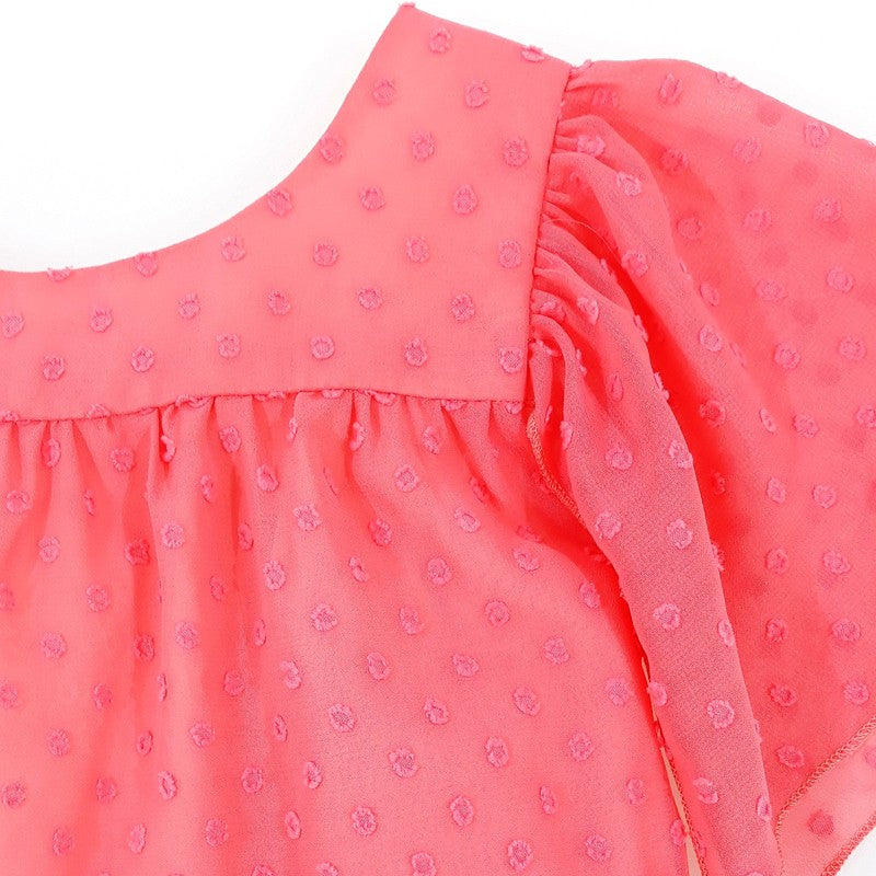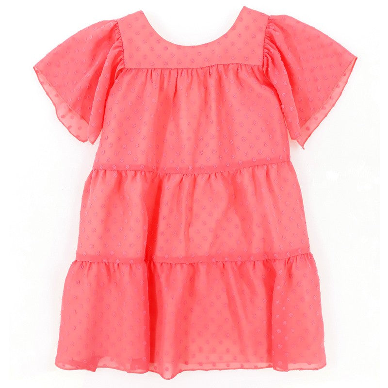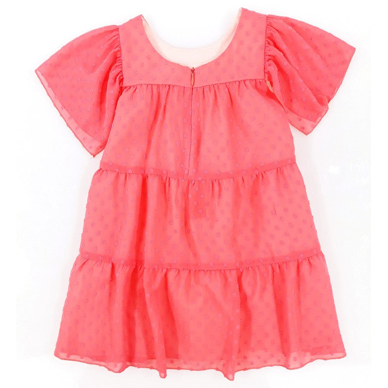 Formal dress for children with embroidered dots for girls MINIMI from the spring summer collection, product code 22/20, coral color. Fashion for children.