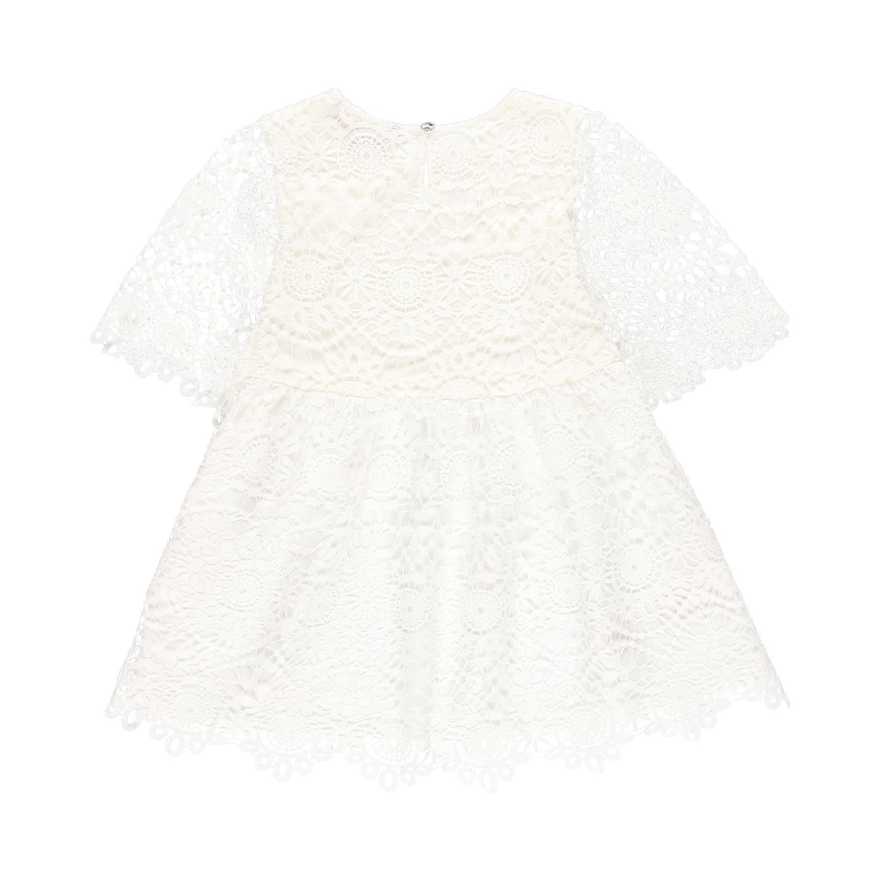 Guipure dress for girls for children elegant with decorative embroidery girl Boboli from the spring summer collection product code 729749 color white. Children's clothing.