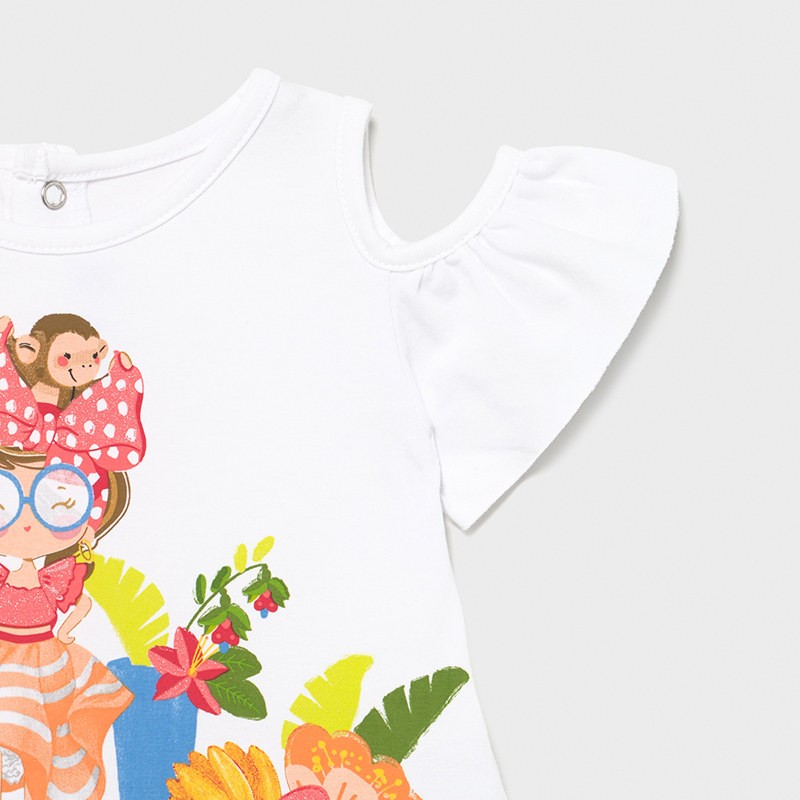 Cotton dress combined with tulle for children with short sleeves and a print for girls Mayoral from the baby girl collection from the spring-summer season product code 1993 color 16 Blue. Children's clothing.
