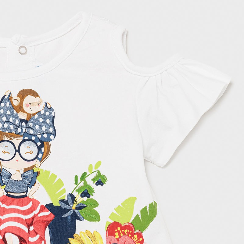 Cotton dress combined with tulle for children with short sleeves and a print for girls Mayoral from the baby girl collection from the spring-summer season product code 1993 color 17 Navy blue. Children's clothing.