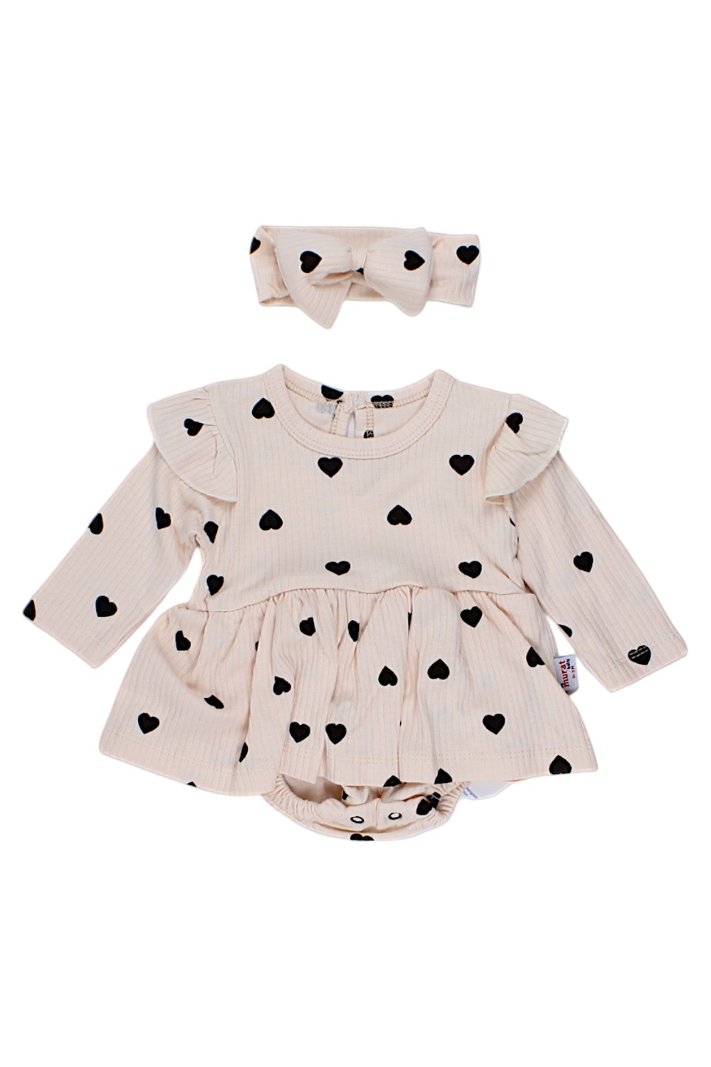 Beige Bodysuit Dress with Headband for Girls Murat Baby