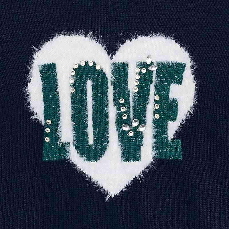 Mayoral children's clothing. Intarsia sweater with ruffles from the Mini girl collection from the fall winter season. Manufacturer's product code 4304 color 37 Navy blue.