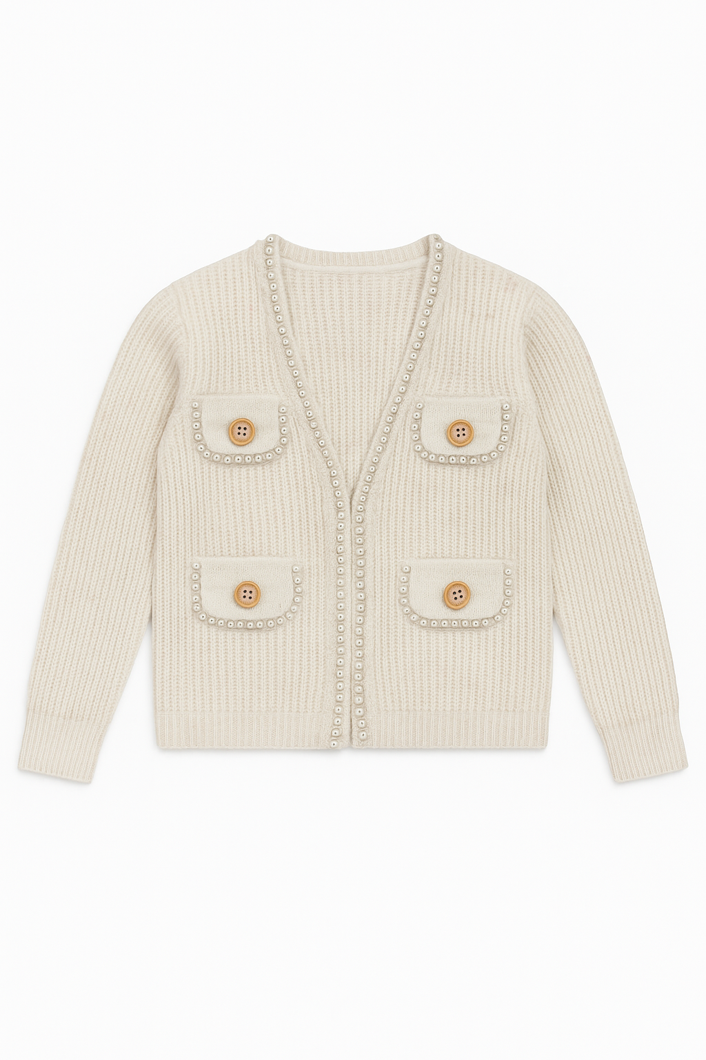 Kremowy sweterek dziewczęcy z perełkami BBW