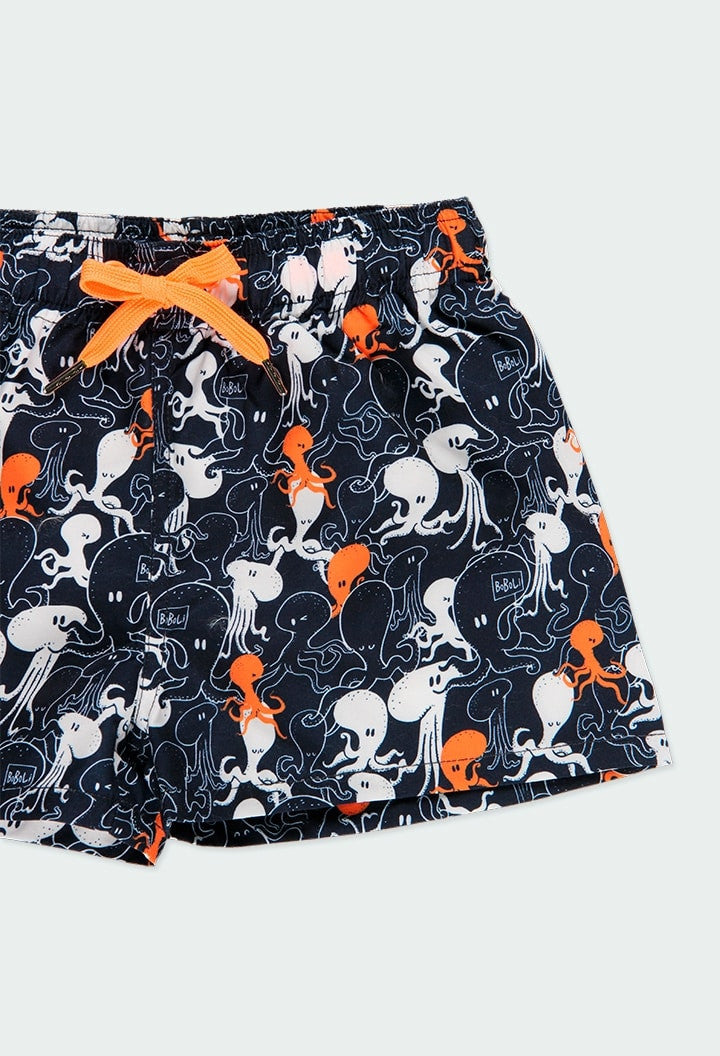 Standout design: Navy shorts with a print of marine motifs, such as colorful octopuses, will attract the attention of every little explorer. The striking shades of white and orange on a contrasting navy background give them a unique character, ideal for holiday fun on the beach, by the pool or during outdoor activities.