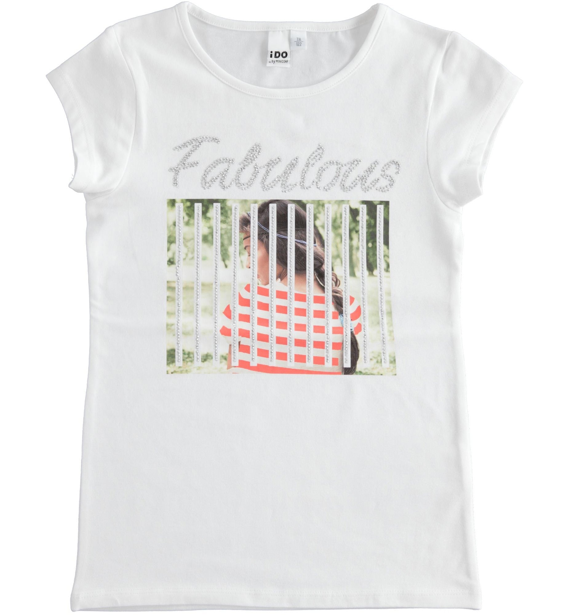 T-SHIRT for children sports shirt with short sleeves for girls iDO from the spring summer collection product code J498 color 0113 white. Clothes for children.