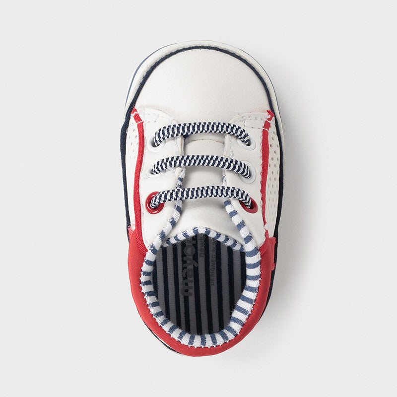 Children's sneakers for toddler boy Mayoral from the newborn boy collection from the spring-summer season, product code 9397, color 81 White/red. Clothes for newborns.