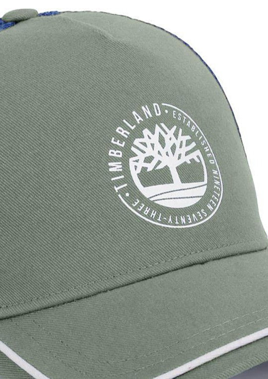 The characteristic element of this model is the combination of classic khaki color with vivid navy accents in the form of mesh on the back of the cap. The mesh not only attracts the eye, but also provides excellent ventilation, making the cap ideal for warm days. The large, white Timberland logo on the front of the cap adds character, emphasizing the brand, which is a symbol of quality and timeless style.
