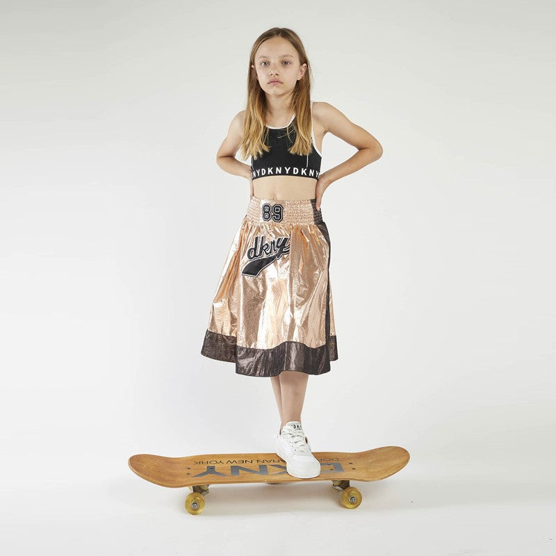 Sports short top with print for girls DKNY from the spring-summer collection product code D35R19-09B color black. Children's clothing.