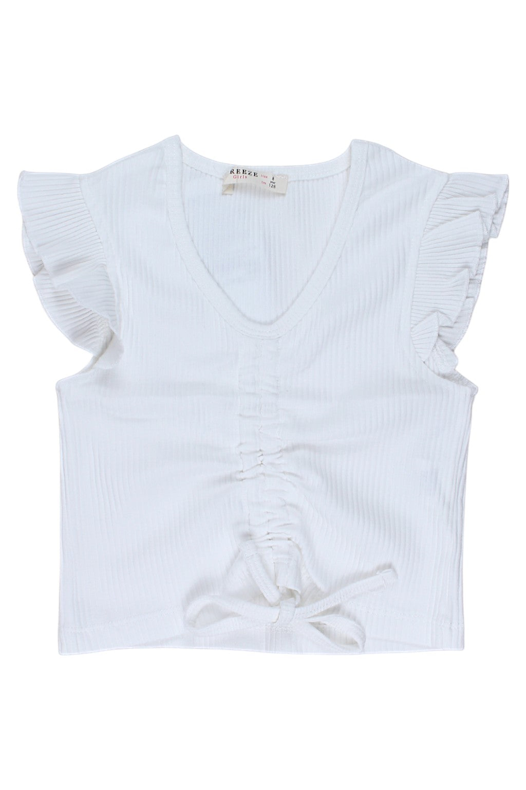 This cream-colored, ribbed top for girls by Breeze is the perfect choice for the spring-summer season. It's made of soft and stretchy material that adapts perfectly to the body. The top is plain and unpatterned, giving it an elegant look. Its simple cut emphasizes comfort. It has no pockets or fastenings and is slipped on over the head. The cream color adds a delicate and understated touch, making it a perfect complement to many girly styles. Perfect for everyday wear and special occasions.Composition: 90% cotton 10% lycra